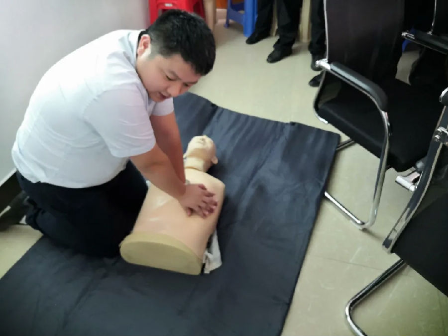 ?? 在實(shí)操環(huán)節(jié),胡洪國(guó)主任醫(yī)師詳細(xì)講解了心肺復(fù)蘇的步驟,包括如何判斷呼吸意識(shí)、如何進(jìn)行胸外按壓以及如何開放氣道等。用圖例展示和現(xiàn)場(chǎng)人體模型模擬操作相結(jié)合的方式,生動(dòng)、形象、直觀地對(duì)員工講解了心肺復(fù)蘇法三個(gè)階段九個(gè)步驟的基本操作要領(lǐng),使員工對(duì)現(xiàn)場(chǎng)相關(guān)的緊急救護(hù)常識(shí)有了較詳細(xì)的了解。??